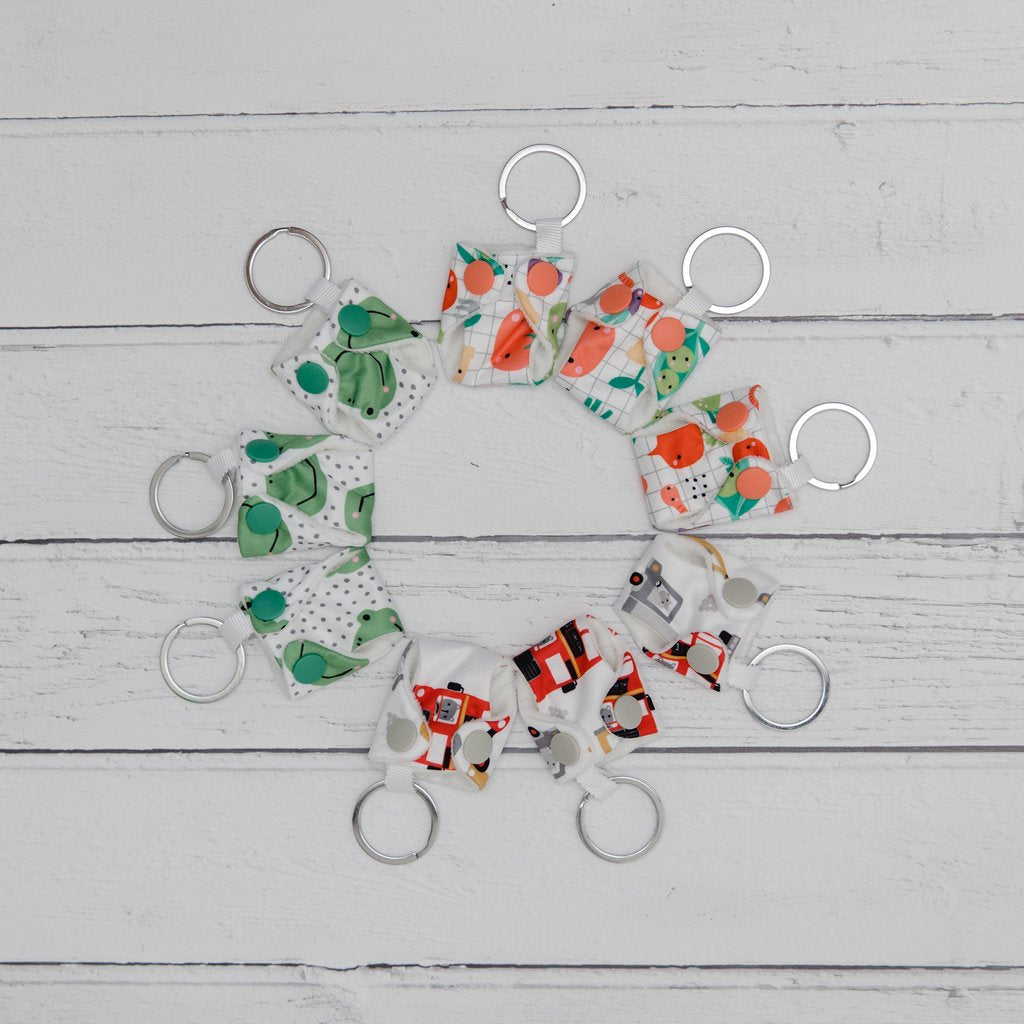 Using these key rings is powerful. Put them on your change bag, your work pass, your children’s nursery and book bags, or on your matching wet bag. You could even use them on your keys. They are a conversation starter, a sign to others that they know someone using reusable nappies. They are a sign that reusables are normal. They show others that change is happening. These key rings help to make cloth mainstream.