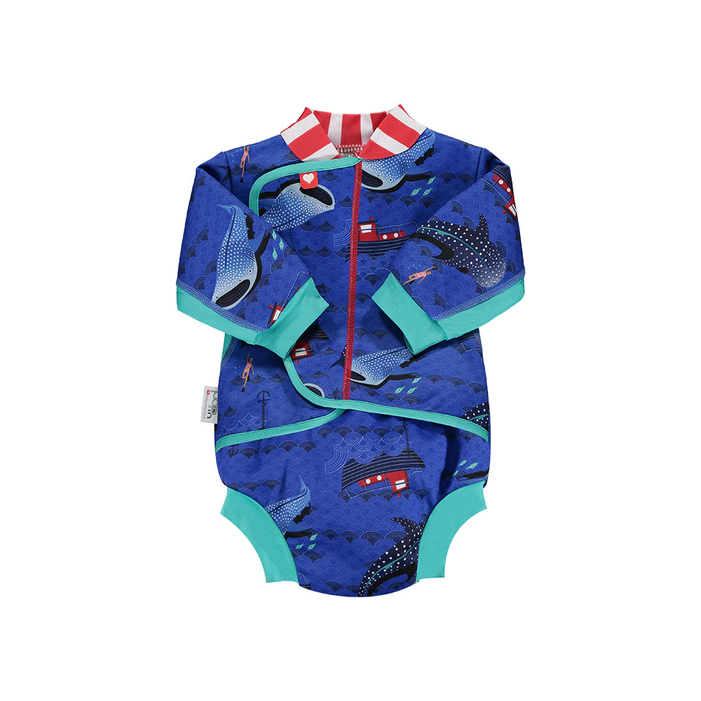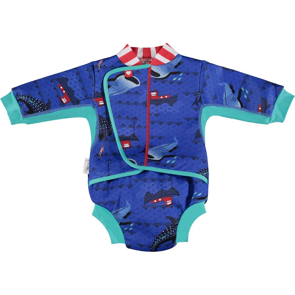 Getting it on couldn't be easier thanks to the full front opening and flexible aplix closing and any little accidents stay safely inside thanks to the integrated Pop-in swim nappy with its unique ‘seal to skin' bind.