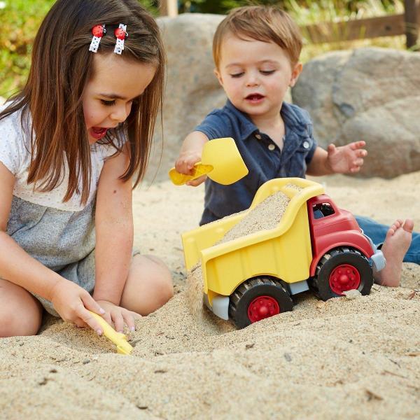 Need help hauling a big load while helping save the planet? The Green Toys Dump Truck is ready for any task, hauling sand or stones with ease. This durable, eco-friendly rig is both safe and stylish, with no metal axels and a workable dumper. Safe, non-toxic; contains no BPA, PVC, phthalates or external coatings. Guaranteed to produce hours of Good Green Fun! Exact colours may vary.