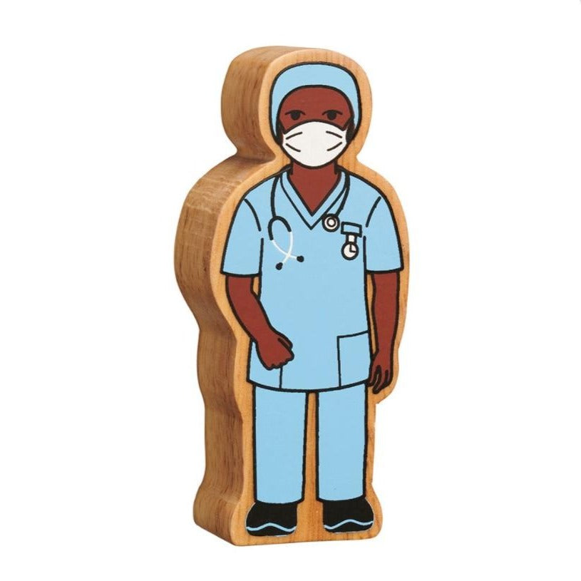 This chunky wooden nurse figure is suitable for little hands and has a blue design with a beautiful wood grain edge - each one is unique! Add this person to any children's toy collection for hours of play at a pocket money price.