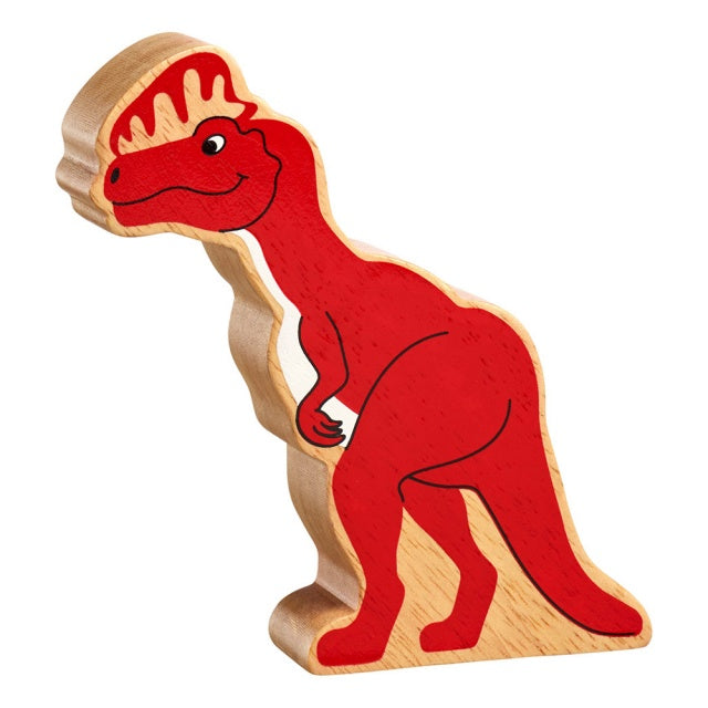 This chunky wooden dinosaur figure is suitable for little hands and has a red design with a beautiful wood grain edge - each one is unique! Add this world animal to any children's toy collection for hours of play at a pocket money price.