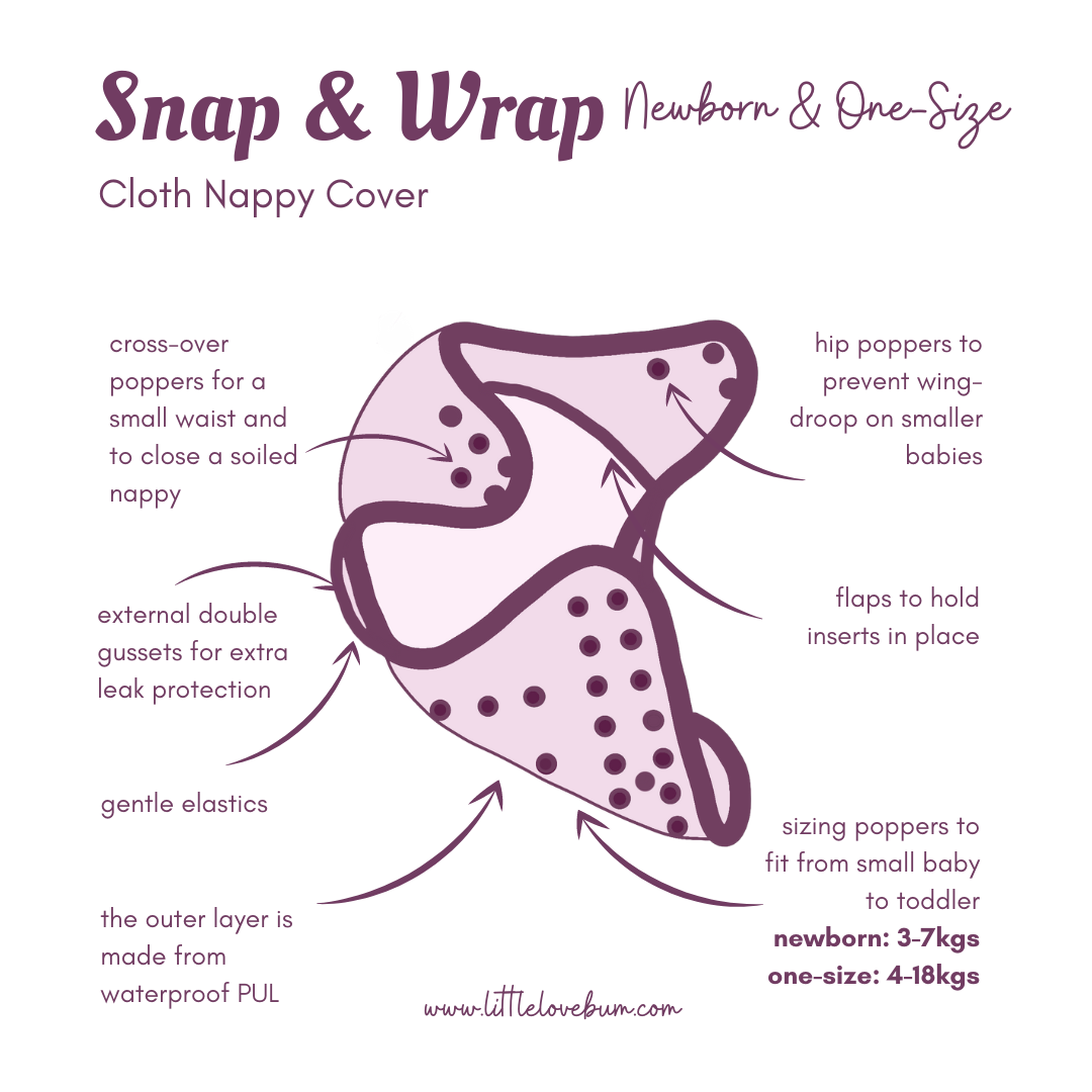 The Snap & Wrap Max cloth nappy cover is a versatile and simple nappy system.