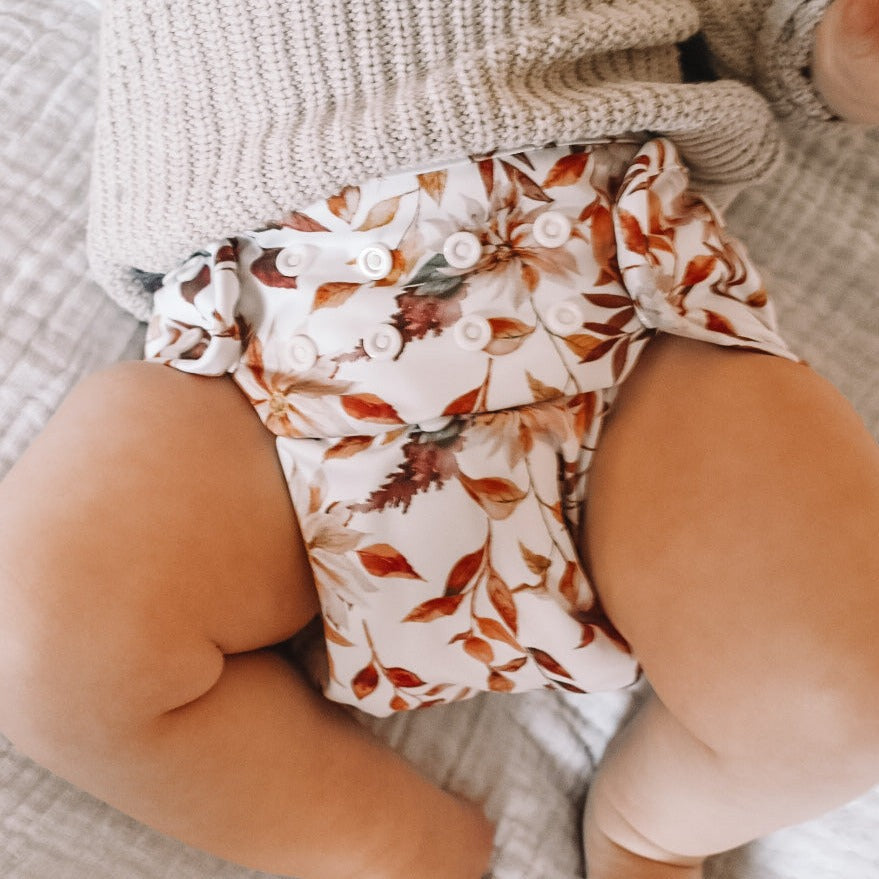 It works brilliantly over fitted, flat and pre-fold nappies. The MuslinZ Prefolds are a great option to use with this cover if you are after a simple and affordable nappy system as you can reuse the wrap up to 3 times before washing.