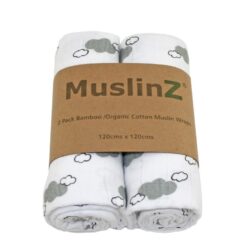 Muslinz Bamboo and Organic Cotton Muslin Swaddles 2pk - Grey Cloud