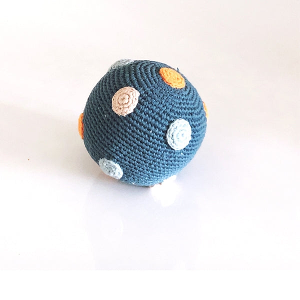 Materials: 100% organic cotton with 100% polyester fill. This toy has a rattle.