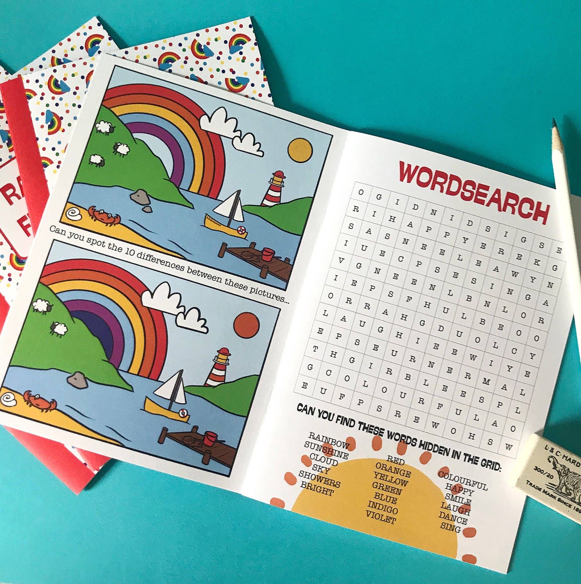 Designed for 4-8 year olds, this 16 page book features a range of fun activities, including I spy, a wordsearch and colouring pages. Printed in colour in the UK on recycled paper these books are A5 portrait size, making them perfect for posting or popping in a party bag! Made in United Kingdom.