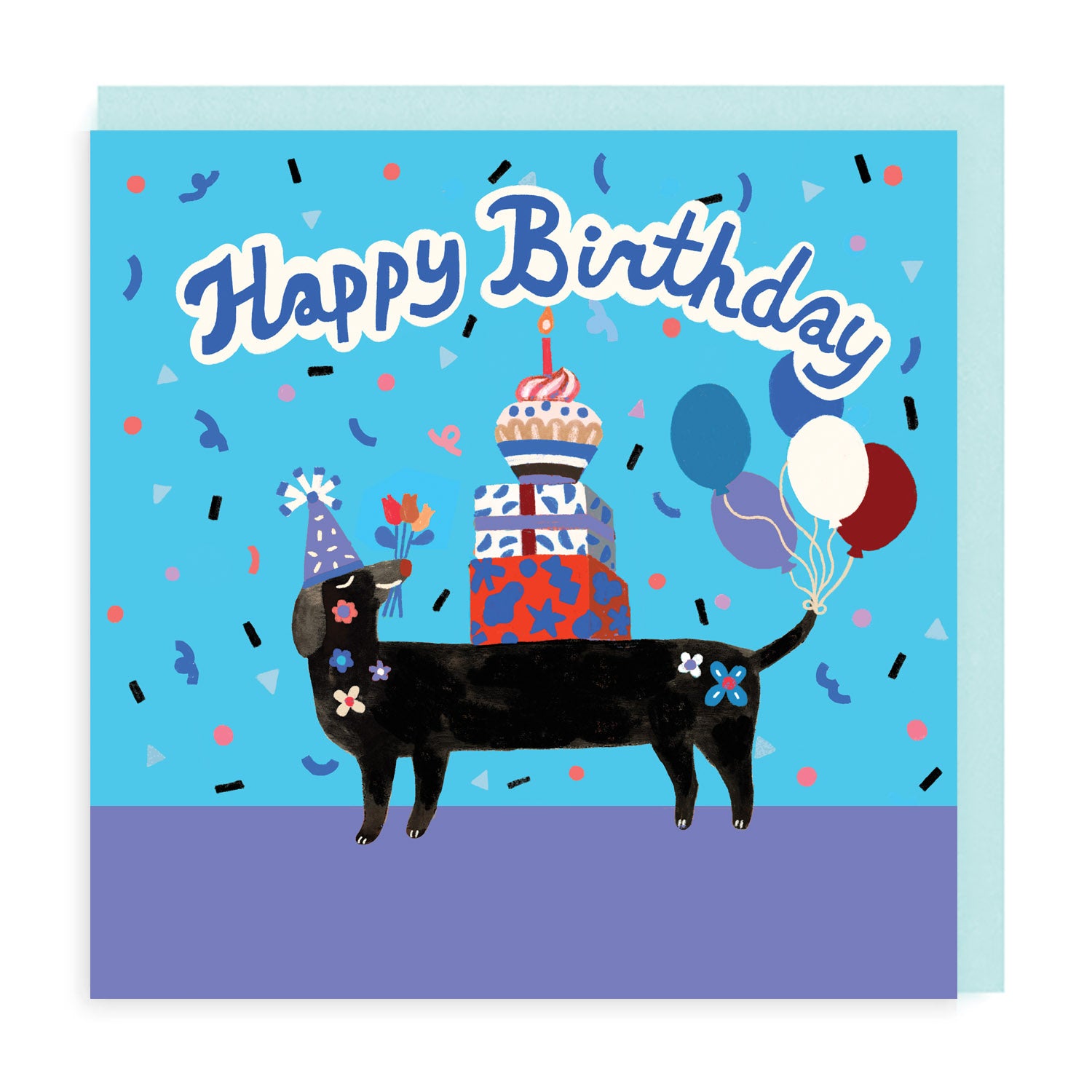 Here's a cheery sausage dog with a bunch of balloons to wish a Happy Birthday!