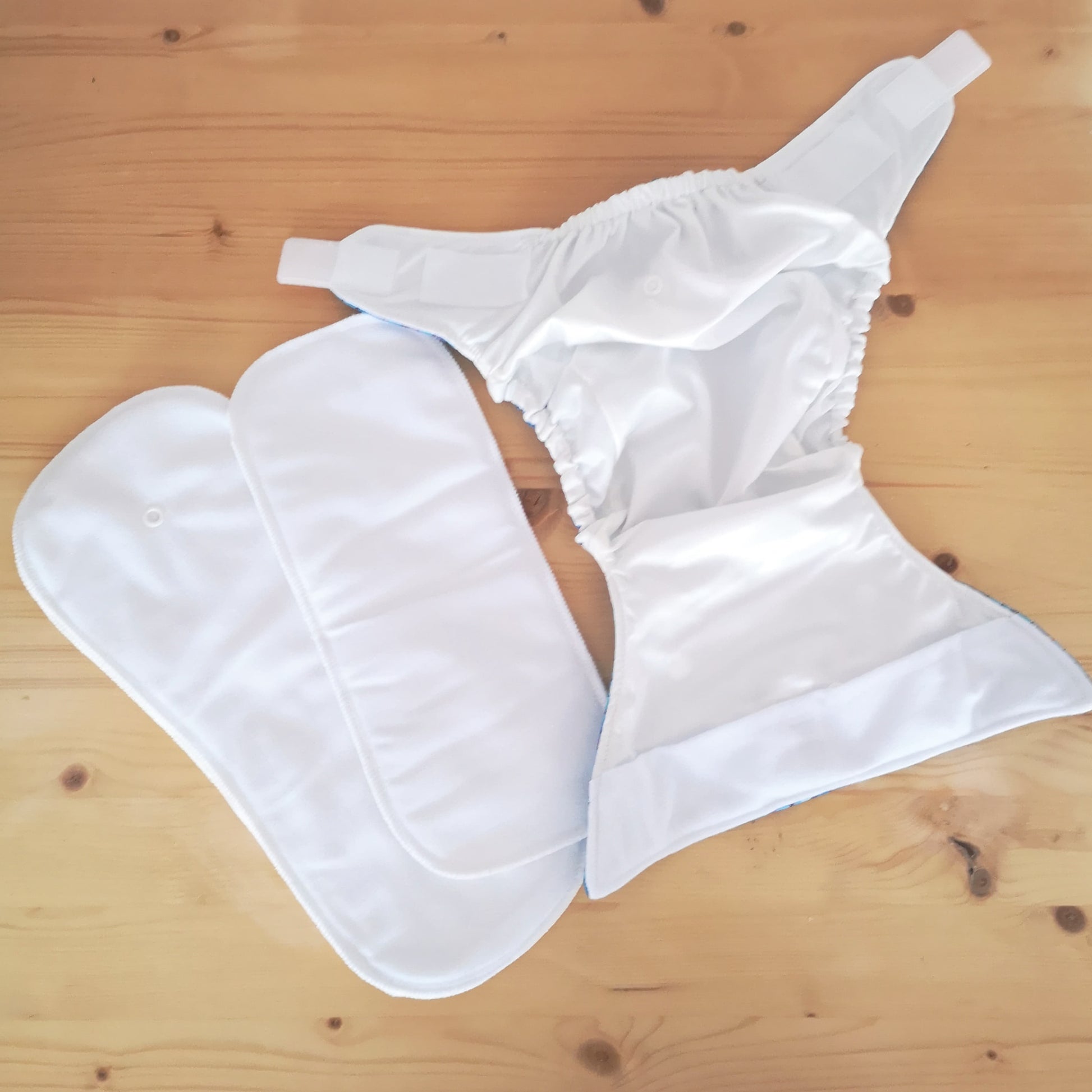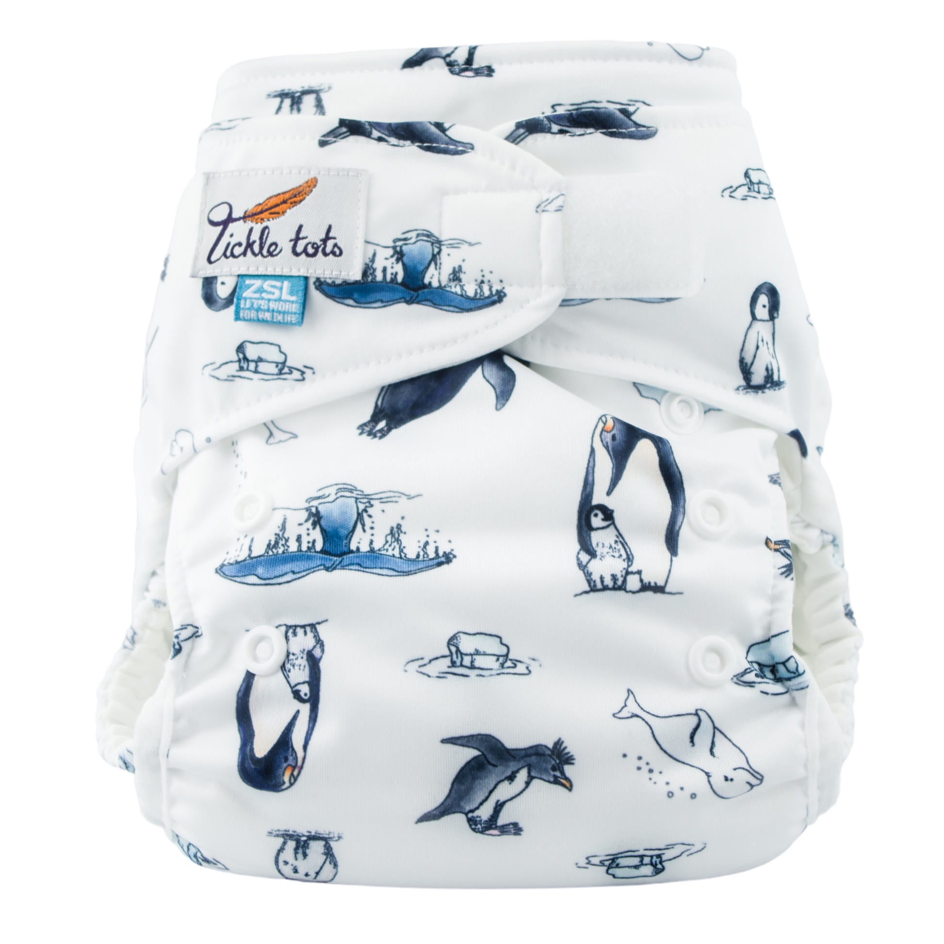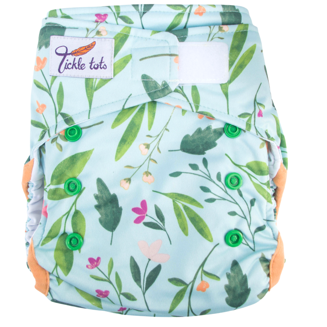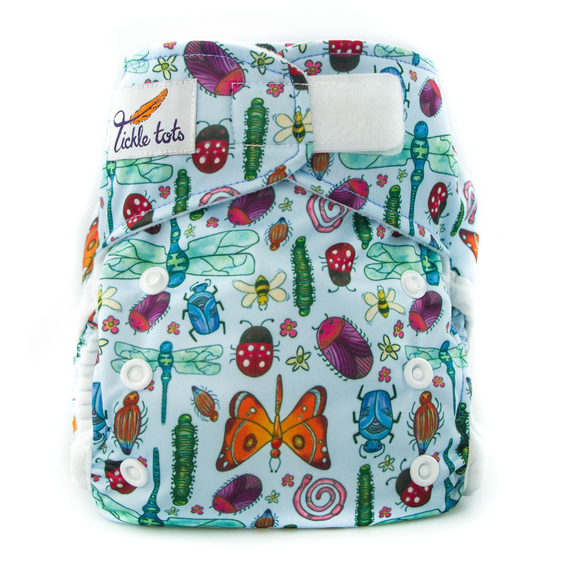 The Tickle Tots 2’s is a two-part nappy system consisting of an outer waterproof shell with ‘snap in’ absorbent boosters.