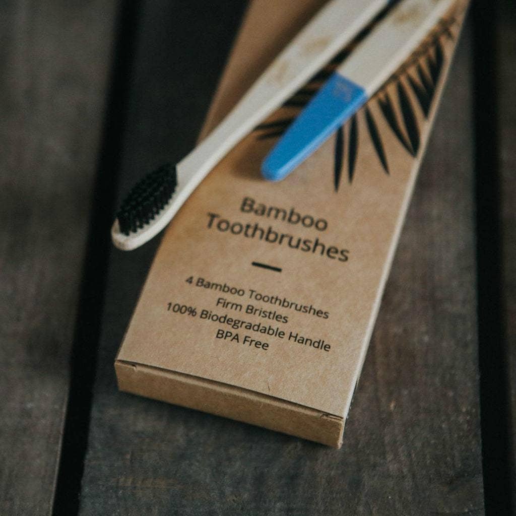 Four medium-firm bristled biodegradable bamboo toothbrushes in a recyclable, plastic free box. In the UK we are disposing of approximately 200 million toothbrushes each year, and each toothbrush can take up to 400 years to degrade! Help us make a change, try bamboo!